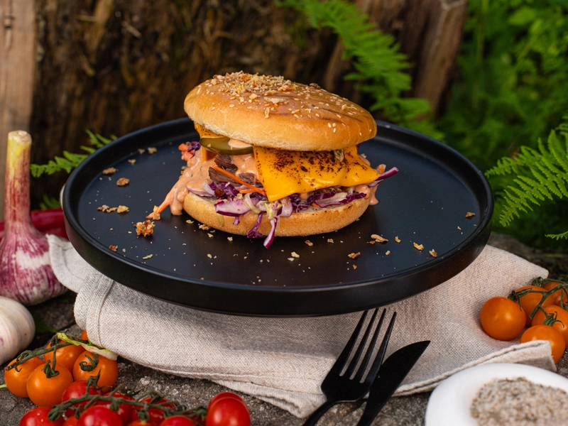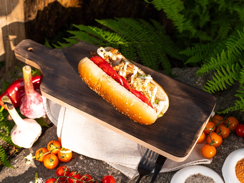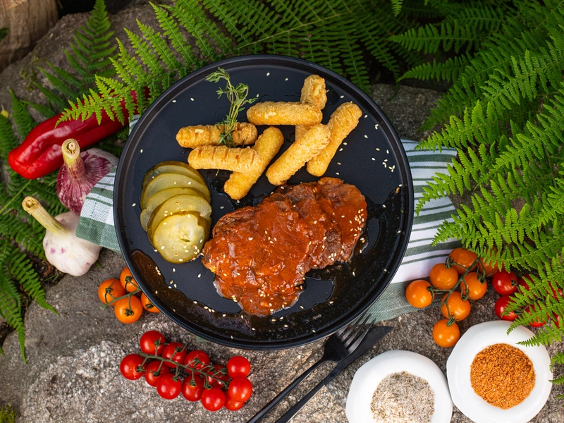 На выбор у нас есть чесночный, барбекю, сырный, кетчуп, сладкий чили